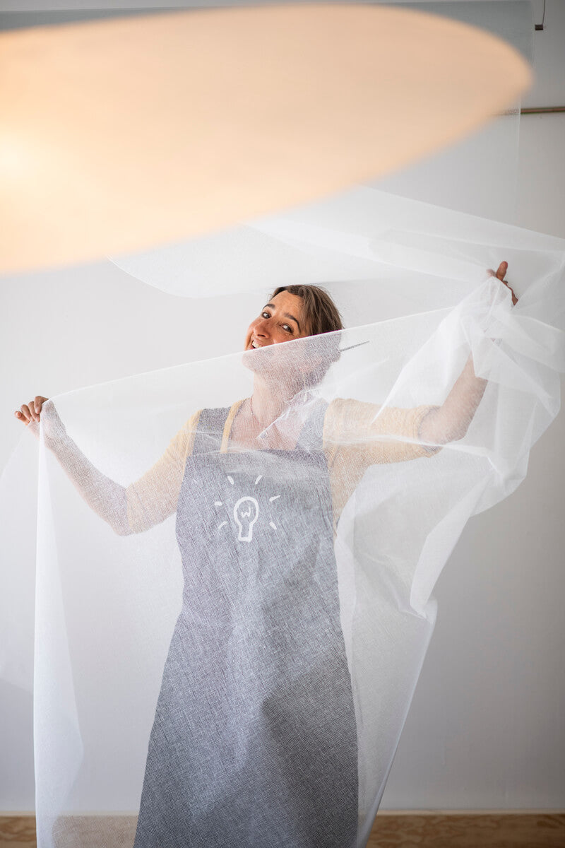 Chaque luminaire est fabriqué à la main dans l'atelier de Montreuil, à partir de matières naturelles comme le papier Washi - que Céline sélectionne elle-même au Japon - et des composants non polluant comme la colle de riz.