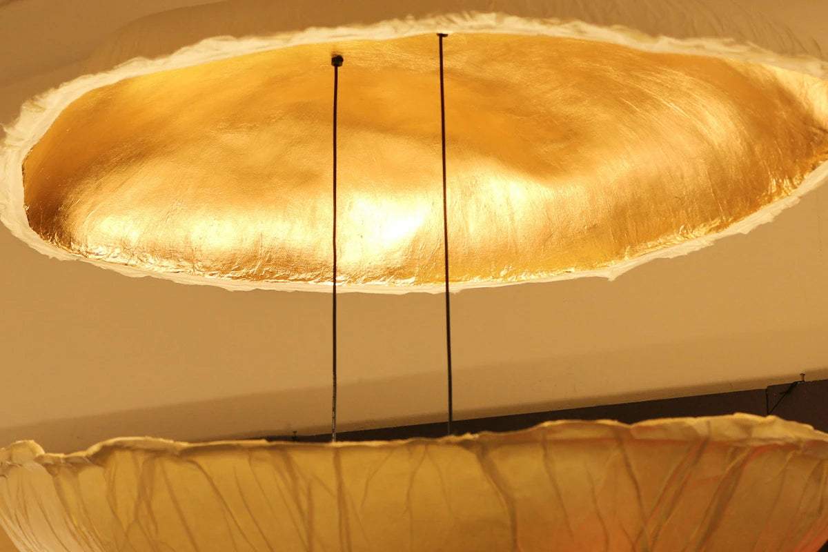 Le « Washi », papier japonais à la blancheur diaphane et inaltérable, possède de nombreuses vertus très mal connues en Europe. Résistant et translucide, il permet de réaliser de très grands luminaires d’une extrême légèreté : le modèle Cirrus, d’une envergure de 2,20 m, pèse moins de 5 kg. Délicat le washi diffuse une lumière douce et apaisante.