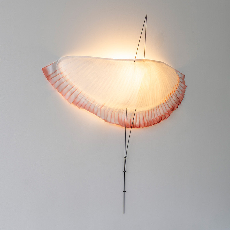 Ce luminaire prend la forme délicate d'un oiseau prêt à prendre son envol, la lumière émanant du centre. Les plumes des oiseaux se parent de rouge coquelicot au rouge brique, deviennent Tsuru, grue du Japon.