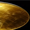A large golden dome reflects the light raising from a crumpled paper cloud floating under the lamp.